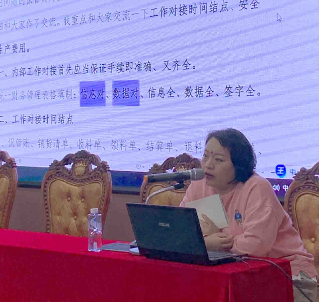 隨后,會議進入了業(yè)務探討交流環(huán)節(jié)。各部門業(yè)務代表紛紛上臺,分享自己在工作中的經(jīng)驗和心得。預算科業(yè)務代表于璦華詳細介紹了預算制定的流程和注意事項,并結合實際案例進行了深入剖析。